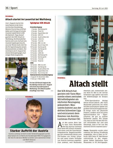 Der SCR Altach hat gestern mit Yann Massombo einen zentralen Mittelfeldspieler als nächsten Neuzugang präsentiert. Massombo kommt aus der dritten Schweizer Liga und entstammt dem Kosmos von Austria-Lustenau-Partner CSC.