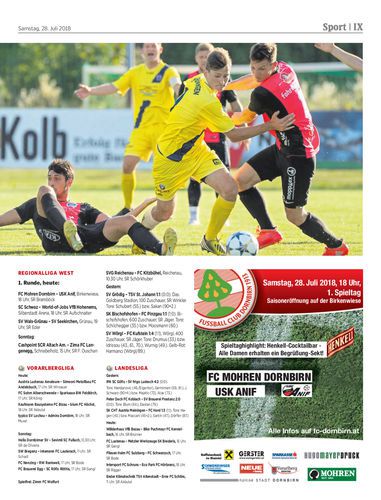 Auf der Birkenwiese trifft die Mader-Truppe heute auf Anif. Im Bergstadion empfängt Aufsteiger FC Bizau den FC Höchst. Beide Spiele beginnen um 18 Uhr. Hard feierte gestern eine erfolgreiche Rückkehr ins Unterhaus.