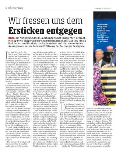 REDE. Die Aufklärung des 18. Jahrhunderts hat unsere Welt geprägt. Philipp Blom diagnostiziert einen mächtigen Angriff auf ihre Ideale. Und fordert zur Rückkehr der Leidenschaft auf. Hier die zentralen Aussagen aus seiner Rede zur Eröffnung der Salzburger Festspiele.