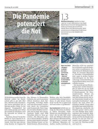 Mit Hurrikan „Hanna“ hat die Sturm-Saison in den USA begonnen. In Kombination mit der Coronakrise kann die Lage heuer schnell eskalieren.