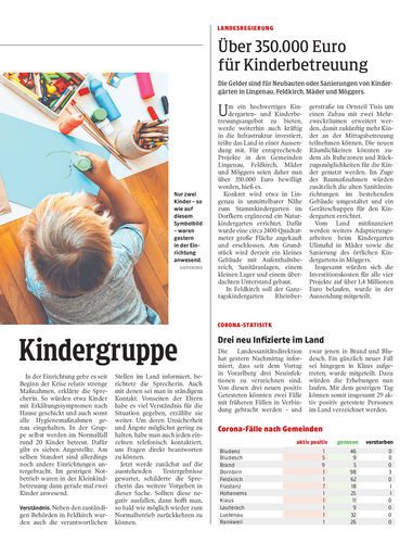 Die Gelder sind für Neubauten oder Sanierungen von Kindergärten in Lingenau, Feldkirch, Mäder und Möggers.
