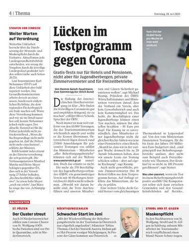 Gratis-Tests nur für Hotels und Pensionen, nicht aber für Jugendherbergen, private Zimmervermieter und für Freizeitbetriebe.
