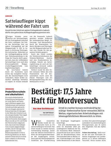 Urteil in zweiter Instanz rechtskräftig bestätigt: Vorbestrafter Syrer versuchte 2023 in Mellau, nigerianischen Arbeitskollegen mit lebensgefährlichem Messerstich zu töten.