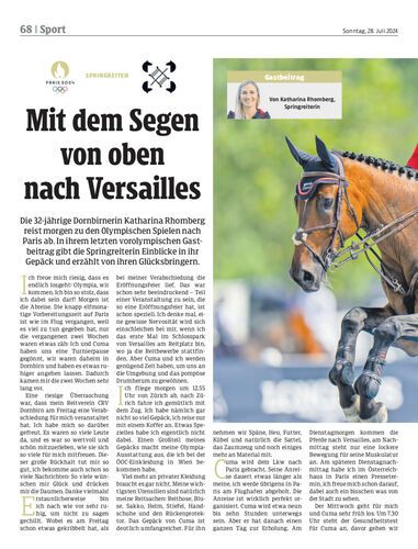 Die 32-jährige Dornbirnerin Katharina Rhomberg reist morgen zu den Olympischen Spielen nach Paris ab. In ihrem letzten vorolympischen Gastbeitrag gibt die Springreiterin Einblicke in ihr Gepäck und erzählt von ihren Glücksbringern.