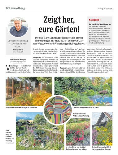 Die NEUE am Sonntag präsentiert die ersten Einsendungen zur Flora 2024 – dem Foto-Garten-Wettbewerb für Vorarlberger Hobbygärtner.