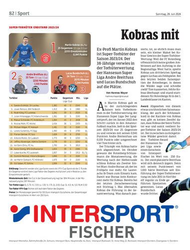 Ex-Profi Martin Kobras ist Super-Torhüter der Saison 2023/24. Der 38-Jährige verwies in der Torhüterwertung der Hansesun Super Liga Andre Breitfuss und Lucas Bundschuh auf die Plätze.