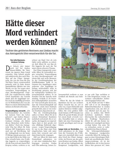 Tochter des getöteten Rentners aus Lindau macht das Amtsgericht Ulm verantwortlich für die Tat.
