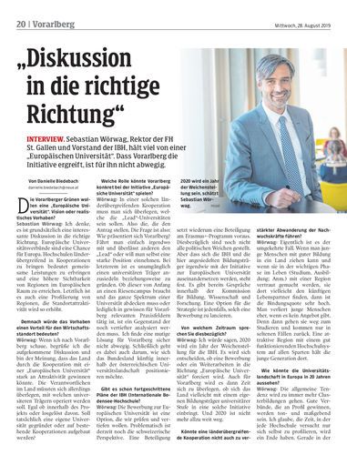 Interview. Sebastian Wörwag, Rektor der FH St. Gallen und Vorstand der IBH, hält viel von einer „Europäischen Universität“. Dass Vorarlberg die Initiative ergreift, ist für ihn nicht abwegig.