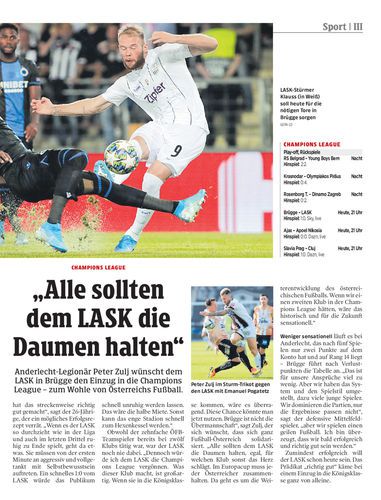 Anderlecht-Legionär Peter Zulj wünscht dem LASK in Brügge den Einzug in die Champions League – zum Wohle von Österreichs Fußball.