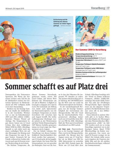 Nur 2003 und 2015 war es in Vorarlberg im Sommer wärmer als heuer. Österreichweit war es der zweitheißeste Sommer.