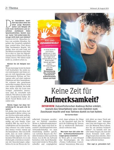 generation Smartphone. Vom Zuhörer zum Zuschauer. Der Zukunftsforscher Andreas Reiter weiß, wie sich Smartphones und neue Medien auf Jugendliche und deren Kommunikation untereinander auswirken. Seiten 2/3 APA