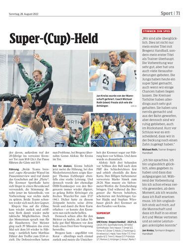 Bregenz Handball krönt sich mit einem 27:25-Sieg gegen Krems nach Siebenmeter-Werfen zum zweiten Mal nach 2016 zum Super-Cup-Sieger.