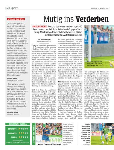 Spielbericht. Austria Lustenau verliert vor 4300 Zuschauern im Reichshofstadion 0:6 gegen Salzburg. Markus Mader geht dabei bewusst Risiko – unter dem Motto: Aufsteiger forscht.