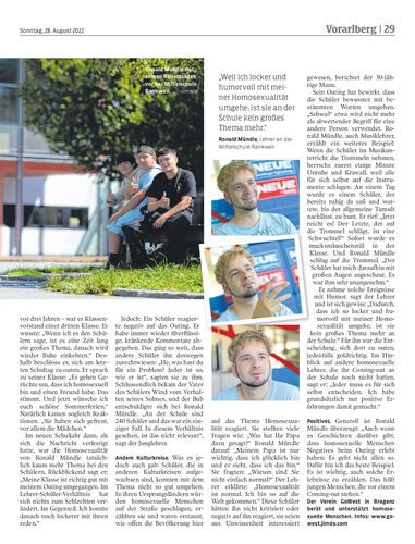 Outing im privaten Umfeld war für Ronald Mündle kein Problem. An seinem Arbeitsplatz, der Schule, wartete er damit erst einmal ab. Dabei wollten Schüler unbedingt alles wissen.