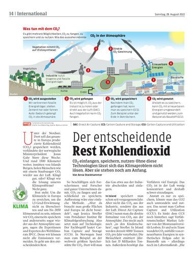 CO2 einfangen, speichern, nutzen: Ohne diese Technologien lässt sich das Klimaproblem nicht lösen. Aber sie stehen noch am Anfang. Von Anna Stockhammer