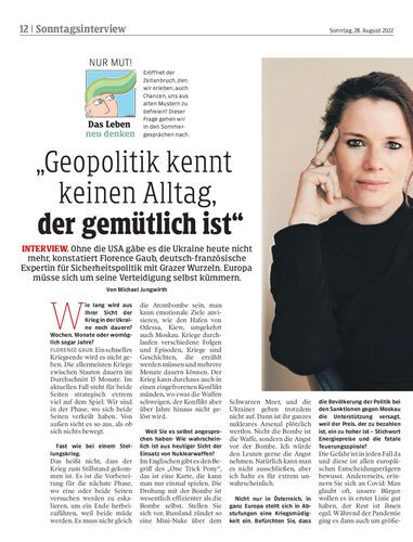 Interview. Ohne die USA gäbe es die Ukraine heute nicht mehr, konstatiert Florence Gaub, deutsch-französische Expertin für Sicherheitspolitik mit Grazer Wurzeln. Europa müsse sich um seine Verteidigung selbst kümmern. Von Michael Jungwirth