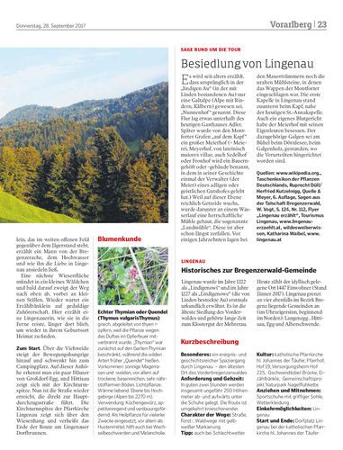 Geschichtenerzählerin Hertha Glück begibt sich diesmal nach Lingenau im Vorderwald und genießt verschiedene Erzählbänkle bis zur Gschwendtobel-Brücke.