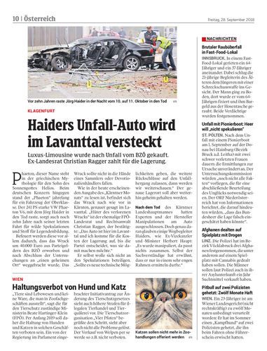 Luxus-Limousine wurde nach Unfall vom BZÖ gekauft. Ex-Landesrat Christian Ragger zahlt für die Lagerung.