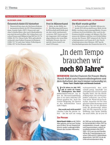 Gleiche Chancen für Frauen: Maria Rauch-Kallat zum Frauenvolksbegehren und dem Aufschrei, der noch immer notwendig ist. Thema-Team: Claudia Gigler und Manuela Swoboda