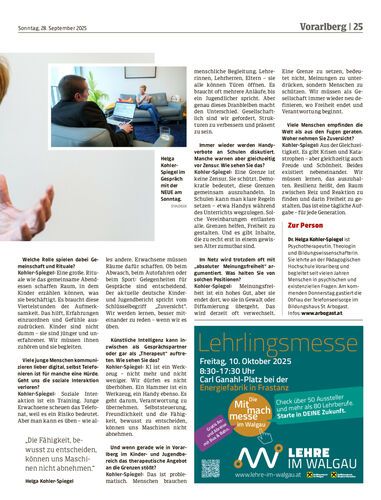 Interview. Die Psychotherapeutin und Bildungswissenschafterin Helga Kohler-Spiegel spricht über die Krisen unserer Zeit, den Umgang mit digitalem Druck, die Rolle von Eltern und darüber, warum Resilienz eine tägliche Aufgabe ist.