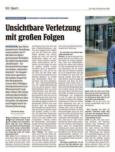 Interview. Das Olympiazentrum Vorarlberg veranstaltet am 17. Oktober im Sportgymnasium Dornbirn das Sportsymposium „BrainCrash – Gehirnerschütterungen verstehen, erkennen handeln“. Im Doppel-Interview sprechen die beiden Experten des Olympiazentrums Marc Philippe (Kompetenzzentrum Wissenschaft) und Marc Sohm (Ärztliche Leitung Sportmedizinisches Institut) über Ursachen, Symptome und Folgen einer Gehirnerschütterung.