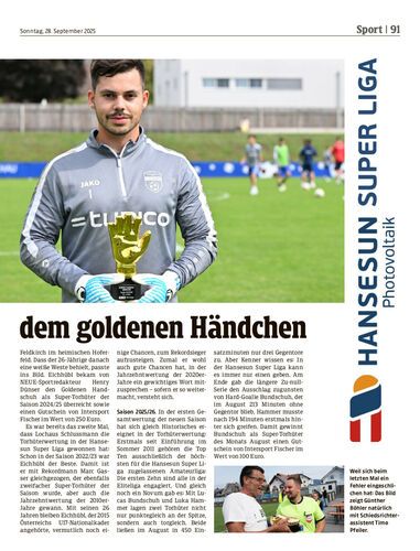 Lucas Bundschuh führt in der Hansesun Super Liga die Super-Torhüter an. Sandro Eichhübl wurde als Super-Torhüter der Saison 2024/25 mit Gold ausgezeichnet.