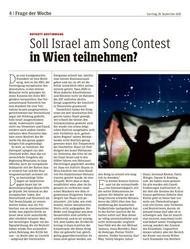 Soll Israel am Song Contestin Wien teilnehmen?