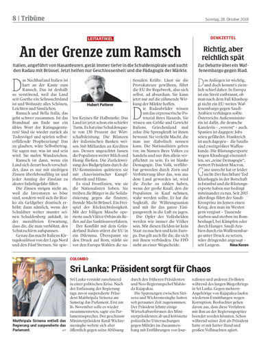Italien, angeführt von Hasardeuren, gerät immer tiefer in die Schuldenspirale und sucht den Radau mit Brüssel. Jetzt helfen nur Geschlossenheit und die Pädagogik der Märkte.
