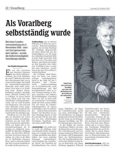 Bei einer Landesversammlung am 3. November 1918 – also vor fast genau hundert Jahren – wurde die Selbstständigkeit Vorarlbergs erklärt.