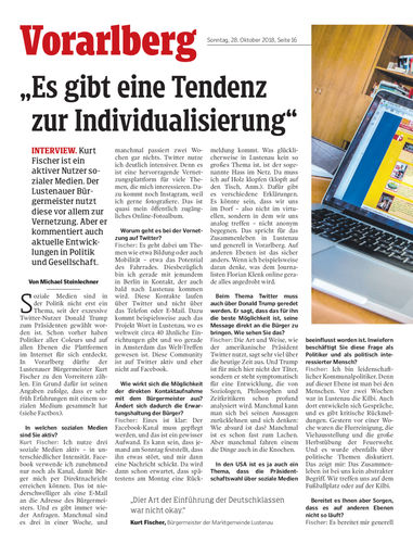 Interview. Kurt Fischer ist ein aktiver Nutzer sozialer Medien. Der Lustenauer Bürgermeister nutzt diese vor allem zur Vernetzung. Aber er kommentiert auch aktuelle Entwicklungen in Politik und Gesellschaft.