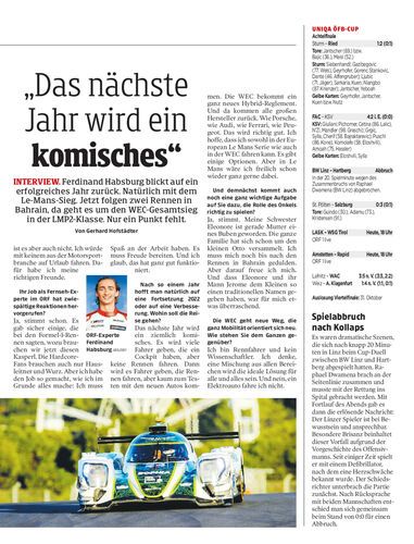 Ferdinand Habsburg blickt auf ein erfolgreiches Jahr zurück. Natürlich mit dem Le-Mans-Sieg. Jetzt folgen zwei Rennen in Bahrain, da geht es um den WEC-Gesamtsieg in der LMP2-Klasse. Nur ein Punkt fehlt. Von Gerhard Hofstädter