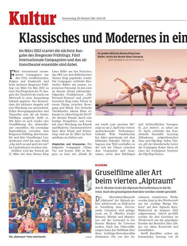 Im März 2022 startet die nächste Ausgabe des Bregenzer Frühlings. Fünf internationale Compagnien und das aktionstheater ensemble sind dabei.