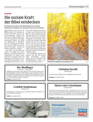 Die PfarrCaritas lädt zu drei Bibelabenden im Lerncafé Feldkirch am Jahnplatz ein. Gestartet wird am 15. November.