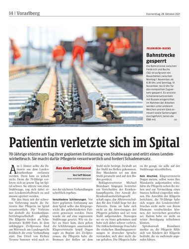 70-Jährige stürzte am Tag ihrer geplanten Entlassung von Stuhlwaage und erlitt einen Lendenwirbelbruch. Sie macht dafür Pflegerin verantwortlich und fordert Schadenersatz.
