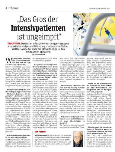 Patienten mit schwerem Lungenversagen und wieder steigende Belastung – Intensivmediziner Walter Hasibeder über die aktuelle Lage in den heimischen Spitälern. Von Martina Marx