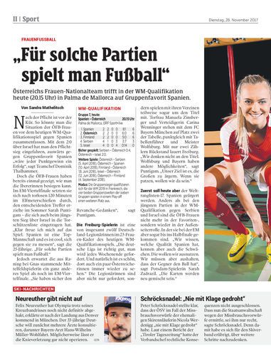 Österreichs Frauen-Nationalteam trifft in der WM-Qualifikation heute (20.15 Uhr) in Palma de Mallorca auf Gruppenfavorit Spanien.
