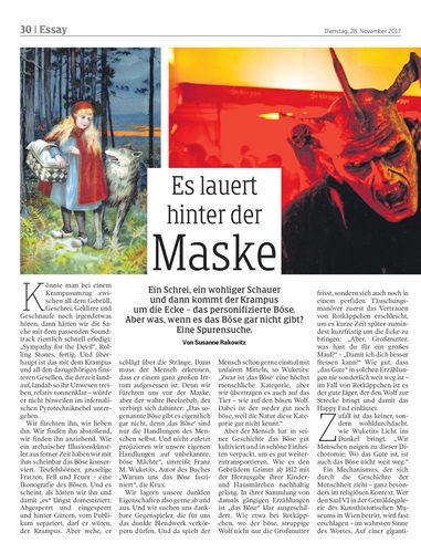 Ein Schrei, ein wohliger Schauer und dann kommt der Krampus um die Ecke – das personifizierte Böse. Aber was, wenn es das Böse gar nicht gibt? Eine Spurensuche. Von Susanne Rakowitz