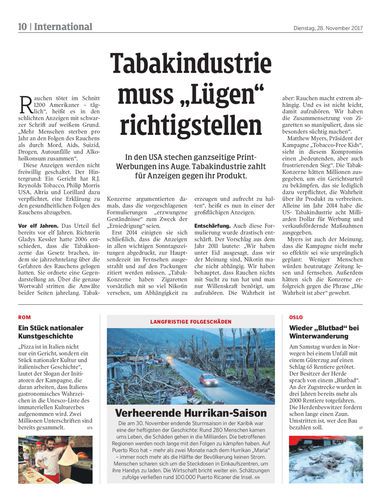 Tabakindustriemuss „Lügen“richtigstellen