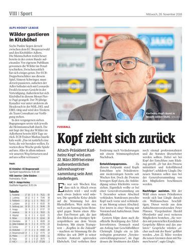 Altach-Präsident Karlheinz Kopf wird am 22. März 2019 bei einer außerordentlichen Jahreshauptversammlung sein Amt niederlegen.