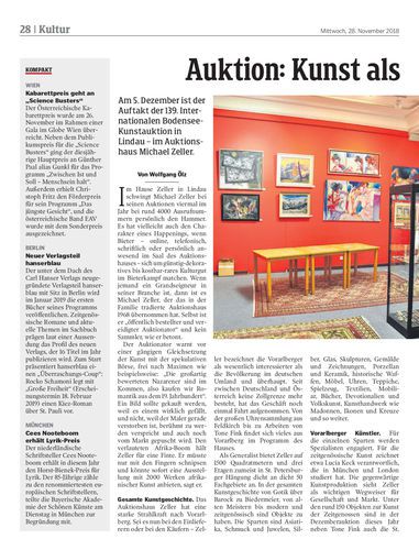 Am 5. Dezember ist der Auftakt der 139. Internationalen Bodensee-Kunstauktion in Lindau – im Auktionshaus Michael Zeller.