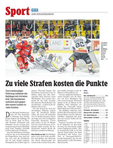 Trotz dreimaliger Führung verlieren die Bulldogs mit 4:6 beim KAC. Die Dornbirner nahmen sich gegen den neuen Leader zu viele Strafen.