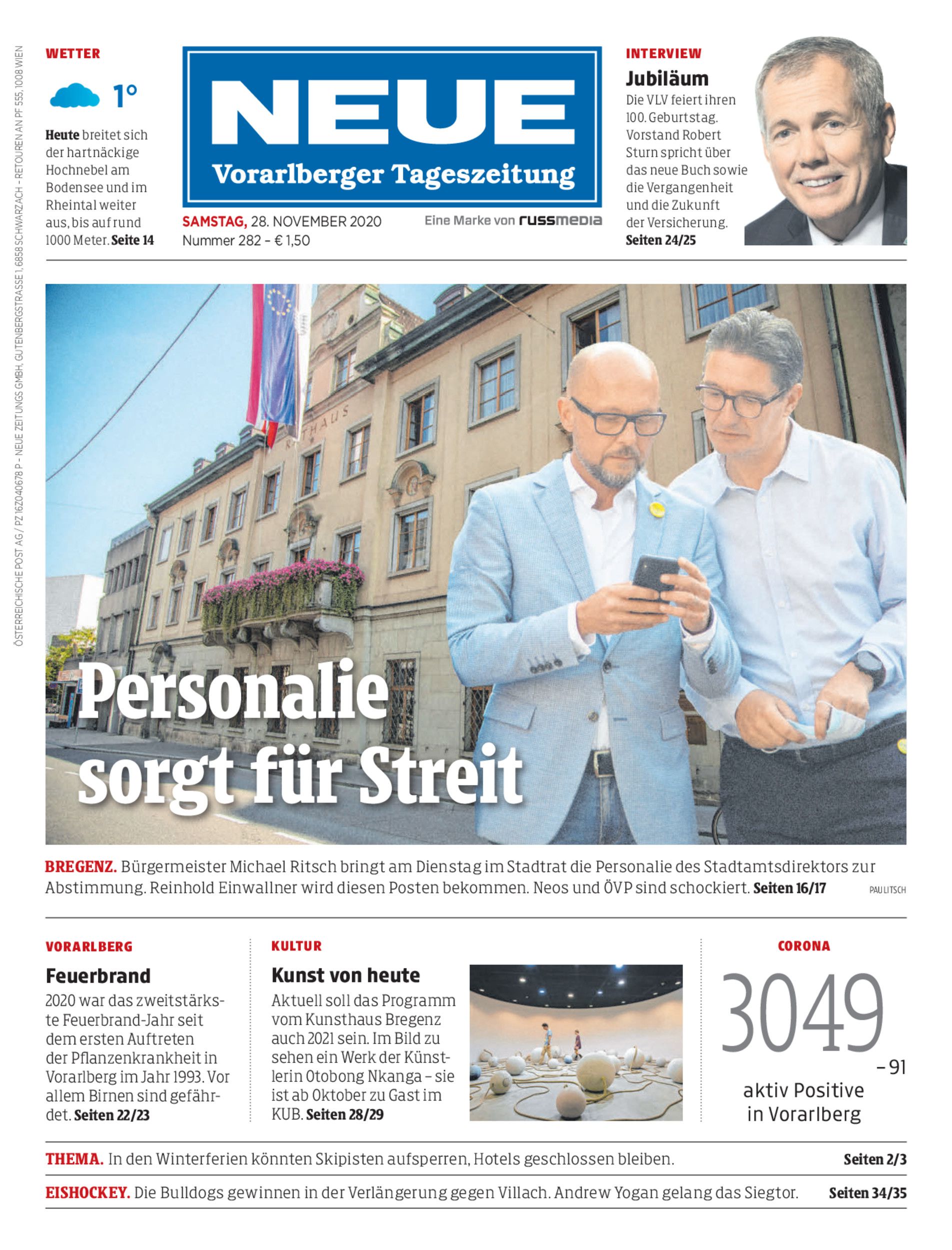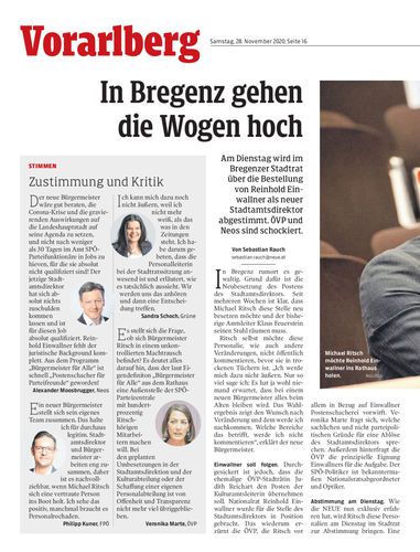 Bregenz. Bürgermeister Michael Ritsch bringt am Dienstag im Stadtrat die Personalie des Stadtamtsdirektors zur Abstimmung. Reinhold Einwallner wird diesen Posten bekommen. Neos und ÖVP sind schockiert. Seiten 16/17 Paulitsch
