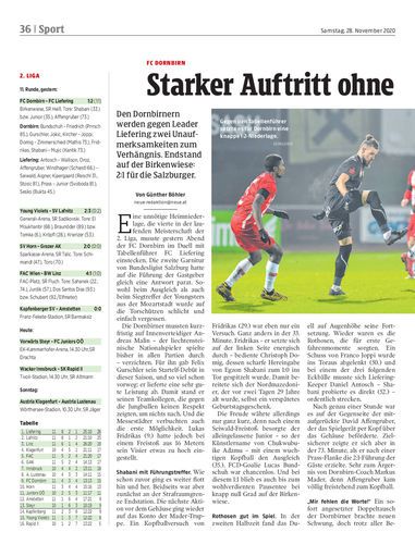 Den Dornbirnern werden gegen Leader Liefering zwei Unaufmerksamkeiten zum Verhängnis. Endstand auf der Birkenwiese: 2:1 für die Salzburger.