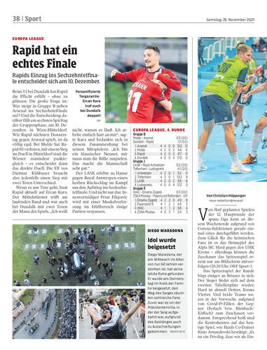 Rapids Einzug ins Sechzehntelfinale entscheidet sich am 10. Dezember.