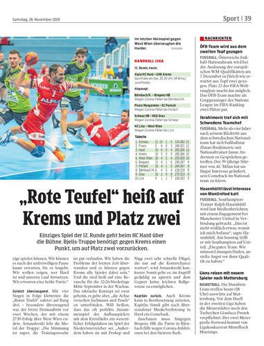 Einziges Spiel der 12. Runde geht beim HC Hard über die Bühne. Bjelis-Truppe benötigt gegen Krems einen Punkt, um auf Platz zwei vorzurücken.