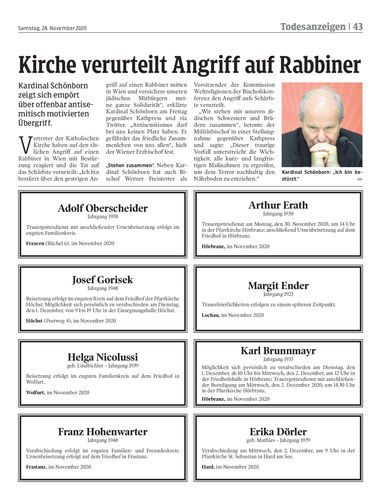 Kardinal Schönborn zeigt sich empört über offenbar antisemitisch motivierten Übergriff.