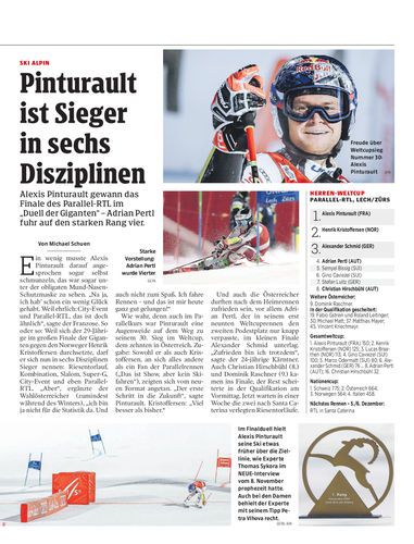 Alexis Pinturault gewann das Finale des Parallel-RTL im „Duell der Giganten“ – Adrian Pertl fuhr auf den starken Rang vier.