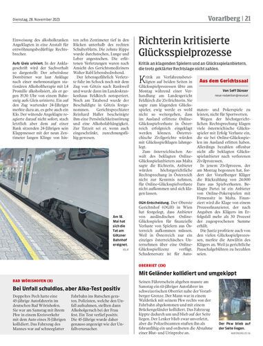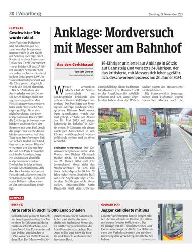 36-Jähriger urinierte laut Anklage in Götzis auf Bahnsteig und verletzte 24-Jährigen, der das kritisierte, mit Messerstich lebensgefährlich. Geschworenenprozess am 23. Jänner 2024.