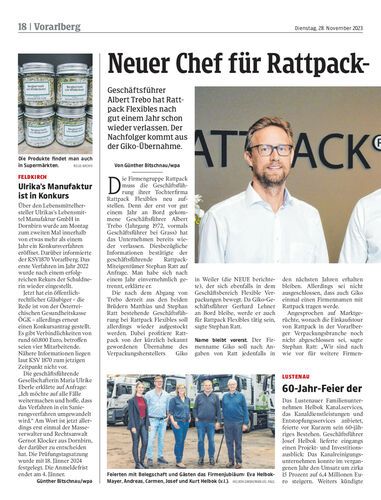 Geschäftsführer Albert Trebo hat Rattpack Flexibles nach gut einem Jahr schon wieder verlassen. Der Nachfolger kommt aus der Giko-Übernahme.