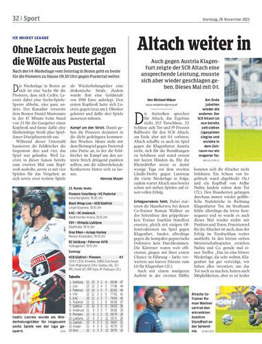 Ohne Lacroix heute gegen die Wölfe aus Pustertal